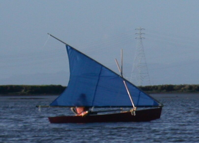 The way I rigged the sail made it impossible to move the center of effort far enough forward, which meant that I spent most of the time at the very back of the boat in an effort to bear away a bit. Need make the mast intersection higher so that I can elevate the rear of the crab claw higher to move the CE forward.